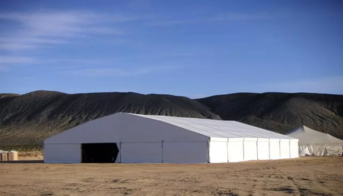 而篷房屬于可拆裝移動建筑,采用高強度鋁合金和防火阻燃篷布建設,整體重量輕,對地面要求非常低,一般只需要場地平整即可,施工無污染,按需求多次移動搭拆,部分異形場地甚至可以做到跟隨山勢等條件搭建,尤其適合工礦企業的復雜作業場地。