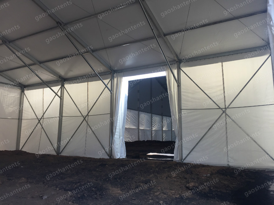 環(huán)保篷房采用高強(qiáng)度鋁合金和防火阻燃篷布建設(shè),整體重量輕,對(duì)地面要求非常低,一般只需要場(chǎng)地平整即可,部分異形場(chǎng)地甚至可以做到跟隨山勢(shì)等條件搭建,尤其適合工礦企業(yè)的復(fù)雜作業(yè)場(chǎng)地。