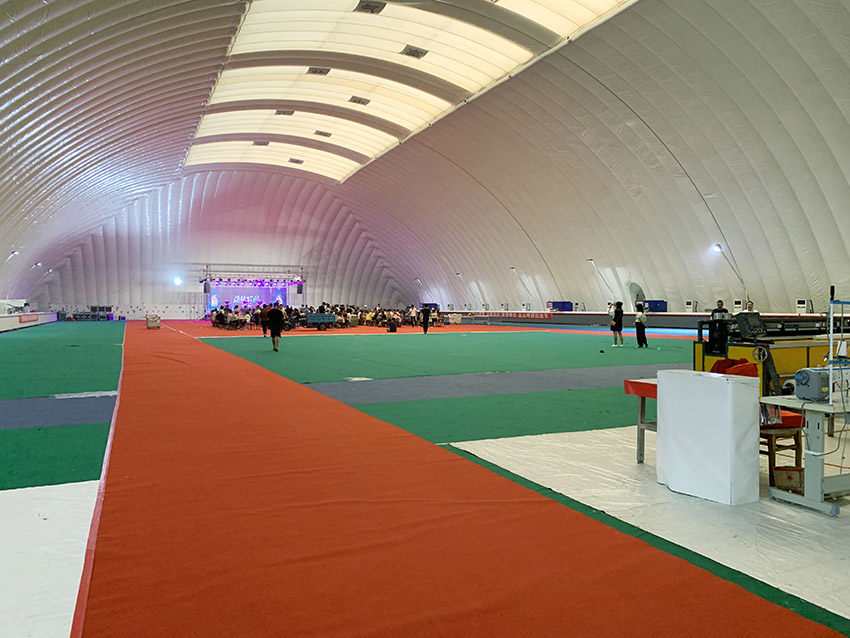 在公司管理中,各個部門都有完善的績效體系、薪酬體系、晉升體系。讓事事有人做,人人有事做。在公司戰略發展上,我們不斷多元化。在高山篷房中國業務的護城河上,開發了氣膜產品。在市場上,我們開展了海外業務。現在發展好是一時的,我們如何做到持續上揚發展,這是兩位老大每天都在思考的問題。