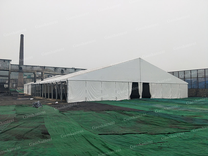 與傳統(tǒng)建筑相比,篷房本身屬于臨時(shí)建筑,不需要繁瑣的審批手續(xù),高山利用客戶園區(qū)自由場(chǎng)地,建造跨度50m、頂高15m的全鋁合金倉(cāng)儲(chǔ)中轉(zhuǎn)空間,隨著加工地點(diǎn)、環(huán)保要求的變化,靈活實(shí)現(xiàn)可移動(dòng),從容解決環(huán)保難題。