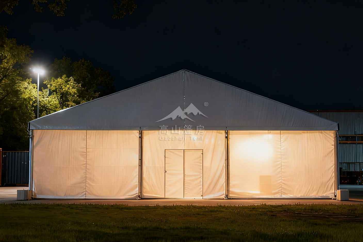 篷房絕非簡單的臨時帳篷,它是一座真正意義上的“移動房產(chǎn)”。其采用高強度鋁合金框架與高性能PVC篷布,結(jié)構(gòu)安全穩(wěn)固,具備優(yōu)異的抗風、防雨、防火性能,能應(yīng)對多種天氣挑戰(zhàn)。從盛大的婚禮宴會、熱鬧的品牌展銷,到緊迫的工業(yè)倉儲、高標準的航空機庫,甚至應(yīng)急救災,篷房都能以百變姿態(tài)完美適配。