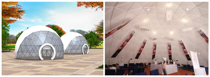 適合主題展覽的球形篷房,內(nèi)部立體空間大,適合別具匠心的大型展品或者展覽+表演,或者設置多層次的立體展示空間。