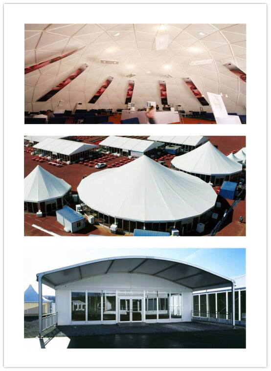 建筑的美感更多源于設(shè)計(jì)師對(duì)結(jié)構(gòu)和理念的把握。如何在展示和創(chuàng)新支撐下,為社會(huì)提供更多具備環(huán)境親和、應(yīng)用貼心和視覺愉悅無(wú)縫融合的室外車展篷房,是高山設(shè)計(jì)師不斷探索的新方向。例如高山多邊形篷房,用層次分明、富有節(jié)奏感的棚頂,配以晶瑩剔透的玻璃墻以及布幔、燈光,輕易營(yíng)造出高端大氣的“有氣場(chǎng)”臨時(shí)建筑;高山弧形篷房,通過(guò)優(yōu)美弧線的律動(dòng)設(shè)計(jì),營(yíng)造出移動(dòng)建筑稀缺的飄逸美感;高山球形篷房,為車展增添了更多的觀賞性。
