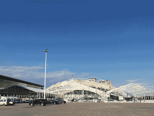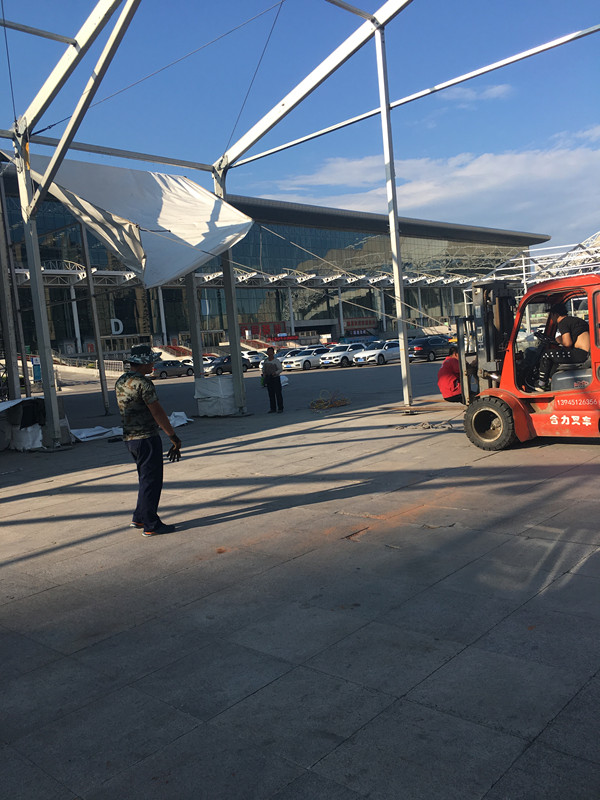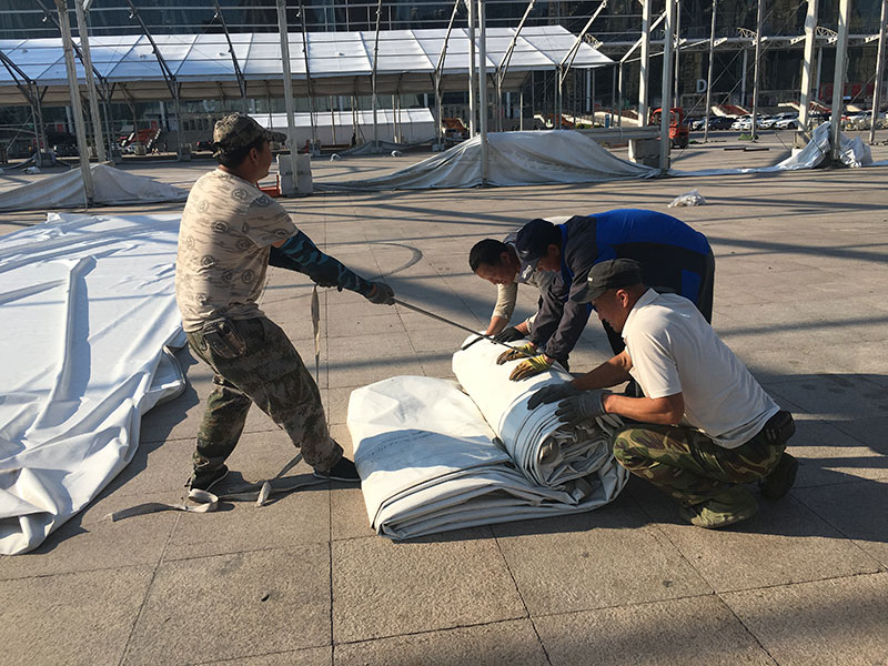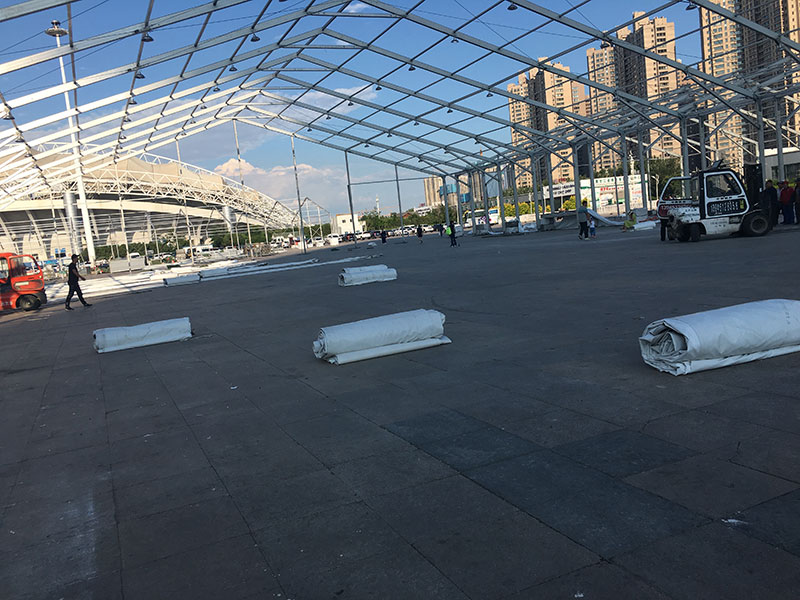 篷房規(guī)模大,同樣,吊車規(guī)格也要大,高山工人告訴小編,在這過程中絲毫不能松懈,不容許有一丁點的失誤。